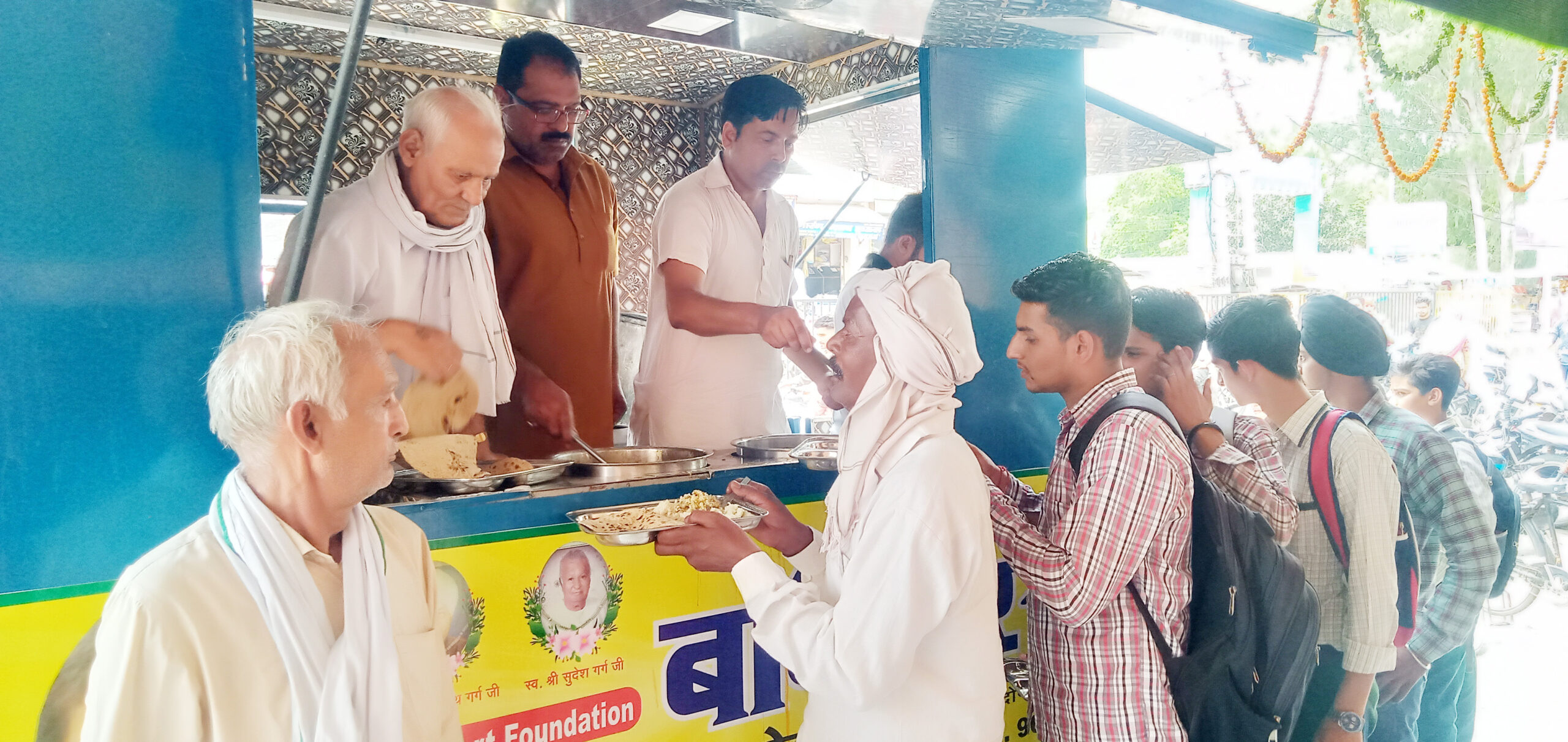 बाबैन रसोई में मुलतानी सभा के सदस्य लोगों को खाना वितरित करते हुए।