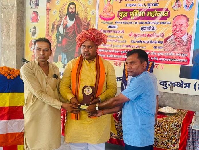 कुरुक्षेत्र । भाजपा अनुसूचित जाति मोर्चा के पूर्व राष्ट्रीय उपाध्यक्ष, केंद्रीय सामाजिक न्याय एवं अधिकारिता मंत्रालय (भारत सरकार) के सदस्य सूरजभान कटारिया ने आज हमें महात्मा बुद्ध के जीवन संदेश से प्रेरणा लेनी चाहिए। श्री गुरु रविदास अमर ज्योति जागृति मिशन आश्रम शाहबाद मारकंडा में आयोजित महात्मा बुद्ध पूर्णिमा महोत्सव में मुख्य अतिथि के रुप में पहुंचे सूरजभान कटारिया ने कहा कि युवा वर्ग को अपने महापुरुषों एवं संत महात्माओं की जीवनी का अध्ययन करना चाहिए और उससे प्रेरणा लेकर अपने जीवन में कार्य करने चाहिए।