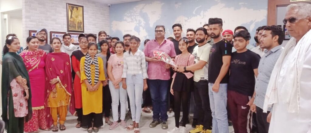 समाजसेवी संदीप गर्ग को एम.के वीजा संसथान के चेयरमैन मनीष कुमार ने बुक्का भेंट करके सम्मानित करके दिया सहयोग व समर्थन देने का आश्वासन