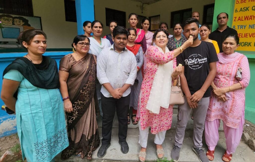 बारहवीं कक्षा के छात्र अपने माता-पिता के साथ मिठाई लेकर विद्यालय में आए और प्रिंसिपल सुनीता खन्ना और अपने अध्यापकों के पांव छूकर आगे भी इसी प्रकार सफल होने का आशीर्वाद मांगा । कैलाशो सैनी, ओम नाथ सैनी, भारत सैनी व प्रिंसिपल सुनीता खन्ना ने मिठाई खिलाकर बच्चों को बधाई दी और भविष्य में भी इसी प्रकार सफलता प्राप्त करने का आशीर्वाद दिया और मेहनत से आगे बढऩे के लिए प्रोत्साहित किया ।