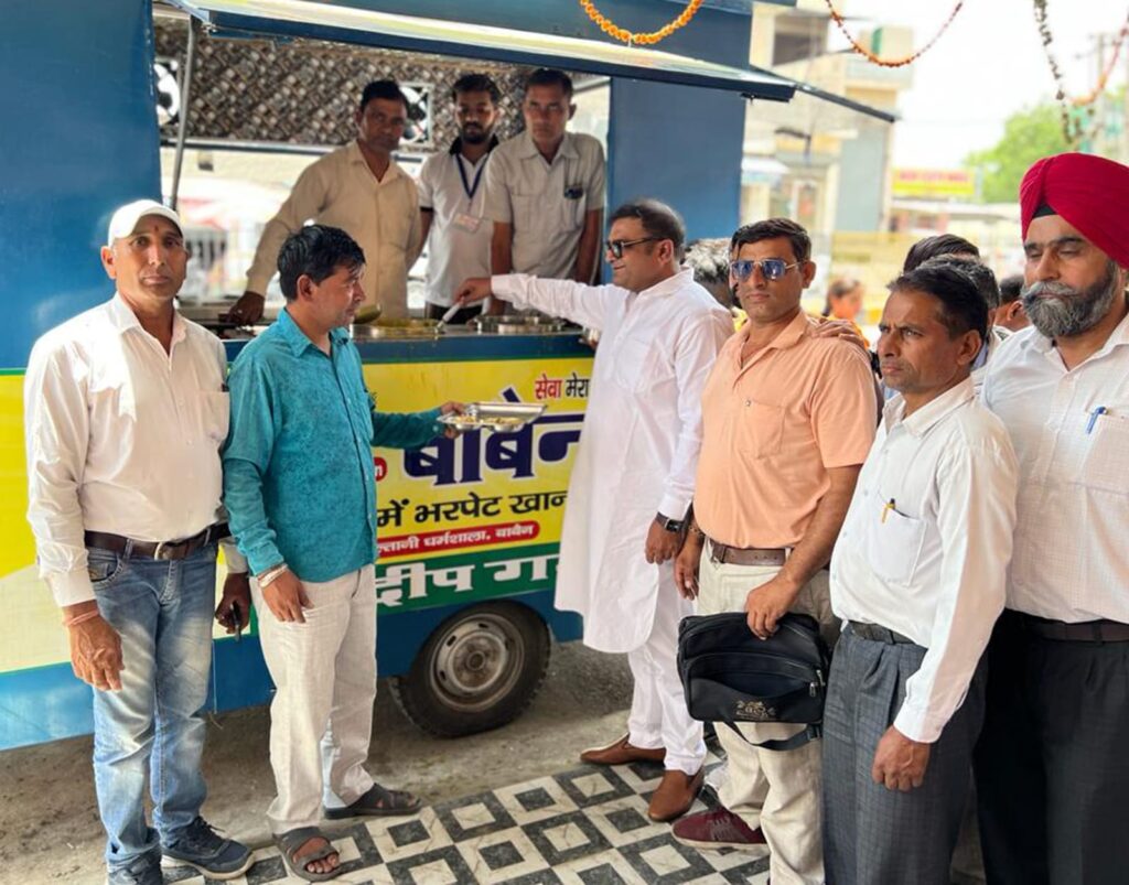 बाबैन, शर्मा । बाबैन की मुल्तानी धर्मशाला में समाजसेवी संदीप गर्ग द्वारा शुरू की गई बाबैन रसोई रविवार को नंबरदार एसोशिएसन के सदस्यों ने लोगों को भोजन वितरीत किया। वहीं मौके पर पहुंचे समाजसेवी संदीप गर्ग ने भी लोगों को भोजन वितरण किया। नबंरदार एसोशिएसन कि सचिव मोहक्कम सिंह ने कहा कि यह जो जरूरतमंद लोगों को समाजसेवी संदीप गर्ग द्वारा बाबैन रसोई के माध्यम से खाना खिलाने का कार्य किया जा रहा है वह बहुत ही सराहनीय कार्य है। जिसकी जितनी प्रशंसा की जाए उतनी कम है।