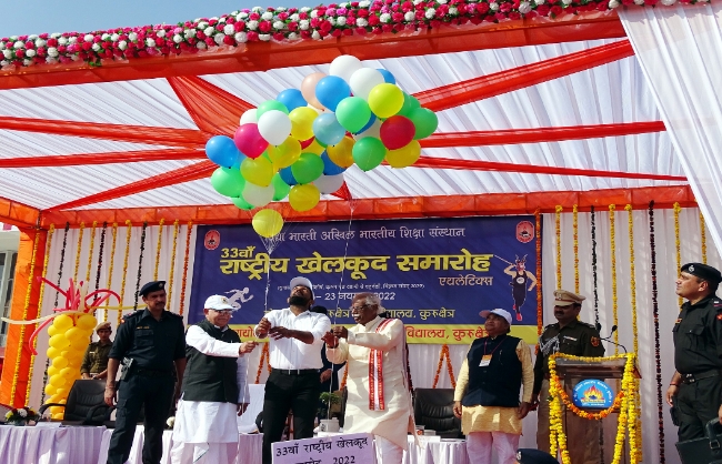 राज्यपाल बंडारु दत्तात्रैय ने 33वें राष्ट्रीय खेलकूद समारोह में देश भर से आए सभी प्रतिभागी खिलाडिय़ों को हार्दिक बधाई एवं शुभकामनाएं देते हुए कहा कि राष्ट्रीय खेलकूद समारोह के इस बड़े समागम की सफलता के लिए विद्या भारती अखिल भारतीय शिक्षण संस्थान व इनकी पूरी टीम बधाई की हकदार है। प्रधानमंत्री नरेन्द्र मोदी द्वारा शुरू किए गए खेलो इंडिया कार्यक्रम से देश में खेल संस्कृति का विकास हुआ है। पिछले दिन पंचकूला में भी खेलो इंडिया कार्यक्रम आयोजित किया गया। खेलों को बढ़ावा देने के लिए केन्द्र सरकार ने टारगेट ओलंपिक पोडियम स्कीम भी शुरू की है जिसके तहत चुने हुए खिलाडिय़ों को 5 लाख रूपए तक की सालाना आर्थिक सहायता दी जा रही है।
