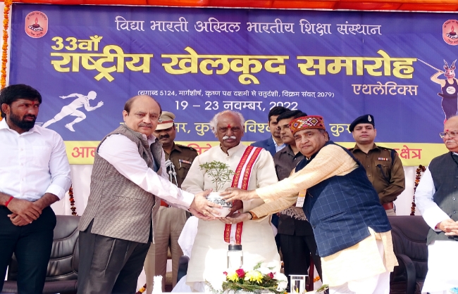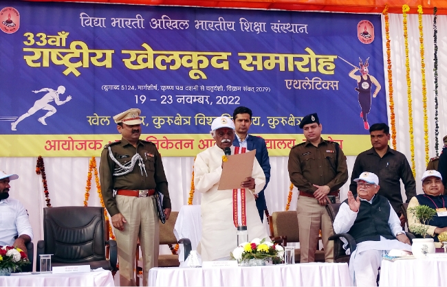 राज्यपाल बंडारु दत्तात्रेय ने 33वें राष्ट्रीय खेलकूद प्रतियोगिता का किया शुभारंभ, विद्या भारती अखिल भारतीय शिक्षण संस्थान की तरफ से आयोजित राष्ट्रीय प्रतियोगिताओं में देशभर के खिलाड़ी कर रहे है बढ़-चढक़र शिरकत, 23 नवंबर तक चलेगी राष्ट्रीय खेलकूद प्रतियोगिता